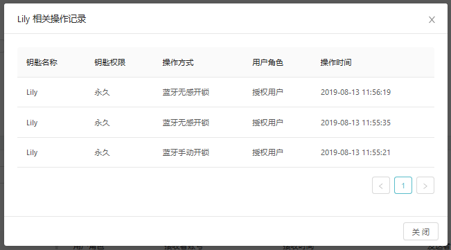 在【锁详情页】点击【设备钥匙】,可以查看设备钥匙列表,可查看每个钥匙的操作记录操作: